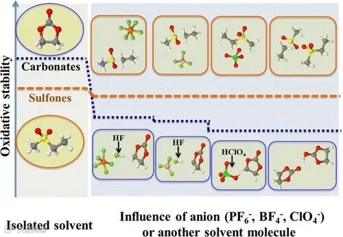 砜类电解液耐高电压是由于其对锂盐阴离子以及共溶剂分子具有较高的氧化惰性