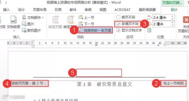 这样,就实现了奇偶数页用不同的页眉。用同样的方法可以对不同章节进行页眉页脚的设置。