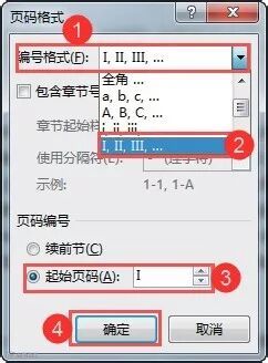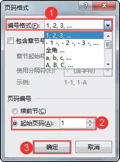 在弹出的对话框中选择所需的“编号格式”、“起始页码”,然后单击“确定”。