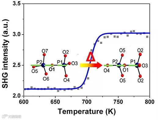 中科院福建物构研究所结构化学国家重点实验室致力于无机光电功能晶体材料研究的罗军华研究员团队在国家杰出青年基金、中科院战略性先导科技专项和中科院海西研究院“团队百人”赵三根研究员主持的国家自然科学基金面上项目、福建省杰出青年基金等项目的资助下,成功获得了一种新型的磷酸盐深紫外NLO晶体RbNaMgP2O7。该晶体在723 K高温下发生可逆的热致相变,使其高温相倍频效应增大至低温相的约1.5倍。他们与桂林理工大学的匡小军研究员合作,利用粉末X射线衍射等手段成功确定了其高温相结构,并与中科院理化研究所的林哲帅研究员合作,通过第一性原理理论计算等方法揭示了其倍频效应增强的内在机制。该工作提供了一种有别于传统化学设计和合成的增强NLO材料倍频效应的物理手段。相关成果发表在Journal of the American Chemical Society 上。