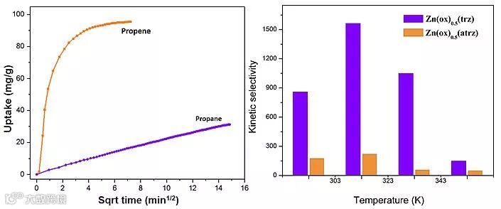 图2. Zn(ox)0.5(trz)对丙烯/丙烷随