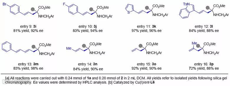 图4. 不对称双烯丙基化反应