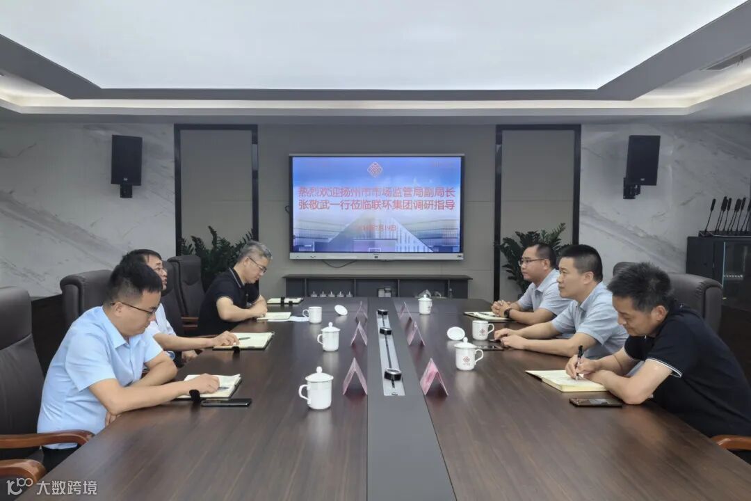 7月19日下午,扬州市市场监督管理局副局长张敬武一行莅临联环集团调研指导并进行座谈交流,联环集团副总经理戴华侨参加调研会议。