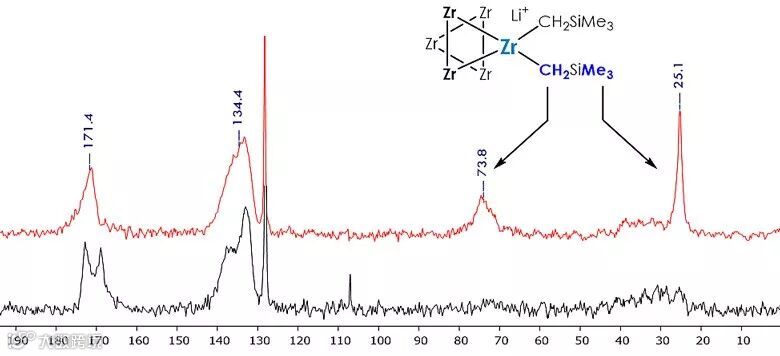 图二. Zr(CH2TMS)2-BTC的固态核磁碳谱