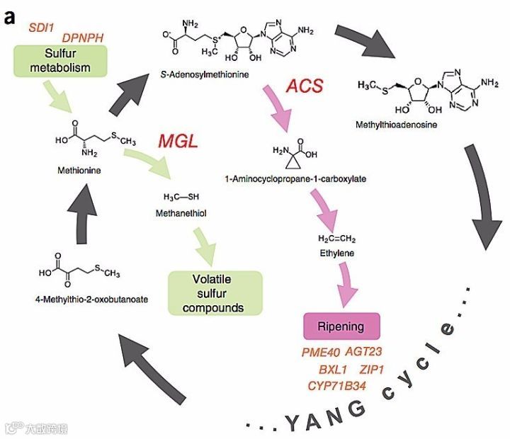 榴莲产生恶臭的硫化合物循环。图片来源:Nat. Genet.