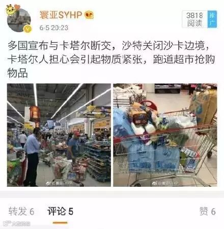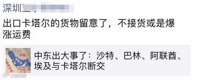 卡塔尔的食品主要通过沙特陆路运输入境,沙特关闭与卡塔尔的边境将会对卡塔尔民众生活带来极大影响。