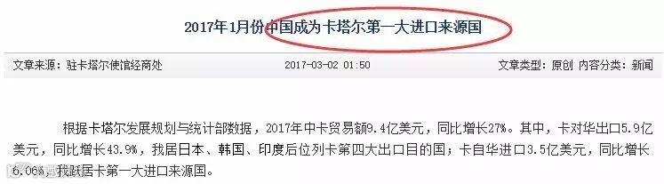 中国作为卡塔尔第一进口来源国能不紧张麽