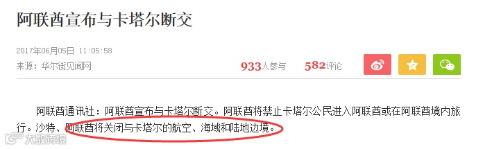 海湾国家的老大沙特也发表声明称,与卡塔尔断交;