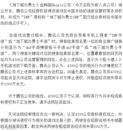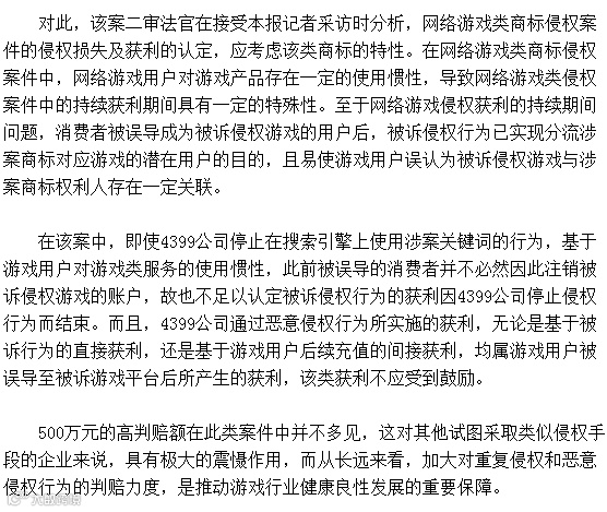 该案当事人腾讯公司和4399公司均是国内游戏巨头企业,涉案游戏商标“地下城与勇士”在业界的知名度颇高,且案件所涉及的法律问题较为典型,因此,该案自起诉阶段就受到业界广泛关注。对于该案二审判决,在业内人士看来,其不仅对同类案件的审理可以起到启示作用,对规范游戏行业的发展秩序也具有积极意义。