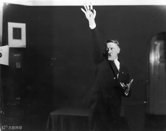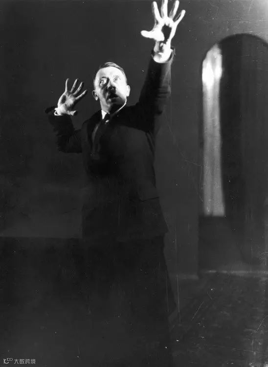 Heinrich Hoffmann曾拍摄过希特勒如何练习手势和肢体语言的画面,夸张的动作使之看起来有些滑稽。