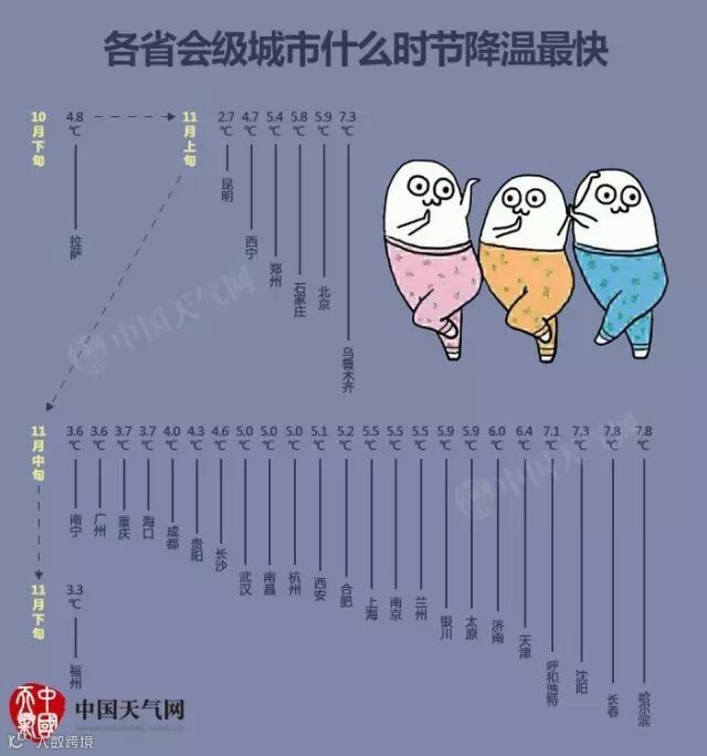 想必这些地方的朋友已经穿上秋裤。当然如果你还没穿,小编敬你是个壮士。
