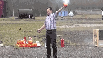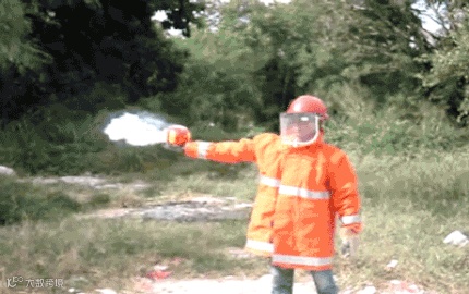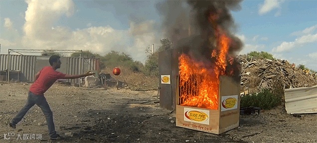使用时只要把它扔至着火点,5秒内就能扑灭大火。