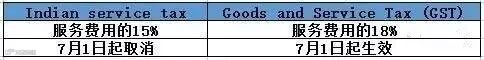 从7月1日起,印度将把其各种各样的本地服务税整合为货物和服务税(Goods and Service Tax (GST)),这个税收也将取代此前公布的印度服务税(Indian service tax)。