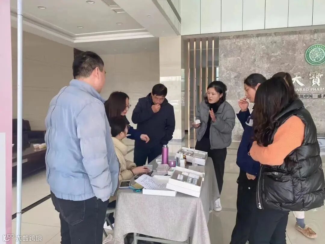 团购活动现场划分为销售区和试用区。销售区整整齐齐地摆放着冻干粉、精华液、眼霜等系列产品和公司推出的节日专属套盒,吸引了众多女士前来购买,现场气氛热烈,一度达到销售“小高潮”;试用区不少干部、职工都在排队体验,通过试用,大家纷纷对产品和功效表示赞许。