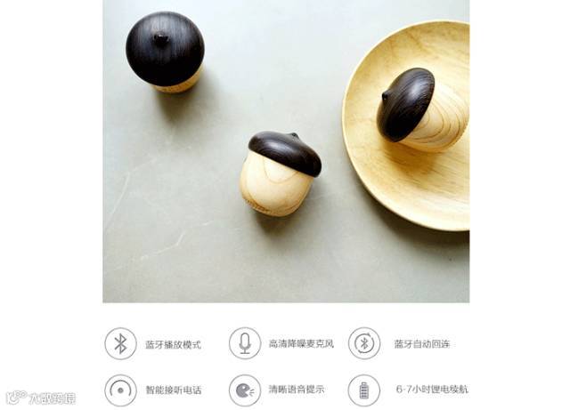 这款坚果蓝牙音箱外表酷似一个坚果的外型,逼真的外型与木纹(并非实木),是经过64道极致工艺,精细打磨而成的,所以才会有着如此逼真的效果。。。