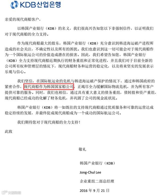(为了表示呵护,政府背景的KDB亲自出面背书”HMM作为韩国国家船公司“)