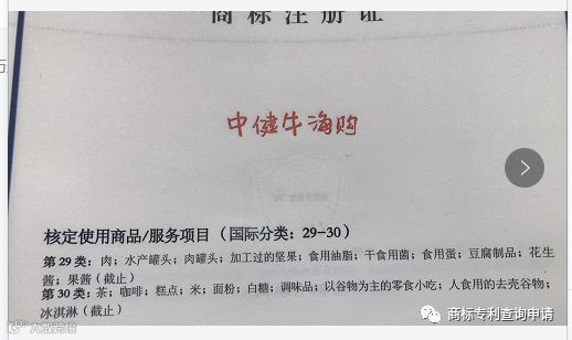 绿智商标专利查询申请1,中健牛海购29类、30类、35,