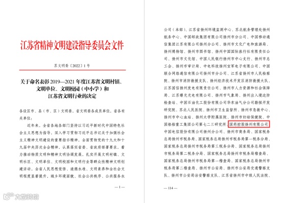 国控扬州在多年的发展实践中,始终坚持经营发展与精神文明“两手抓、两手都要硬”,以加强党建为引领,以文化建设为抓手,坚持高标准谋划、高水平实施,不断创新载体方式、丰富创建活动,切实提高了企业精神文明建设水平。