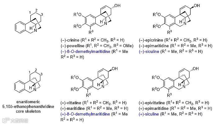 图1. 文殊兰型生物碱具有镜像骨架