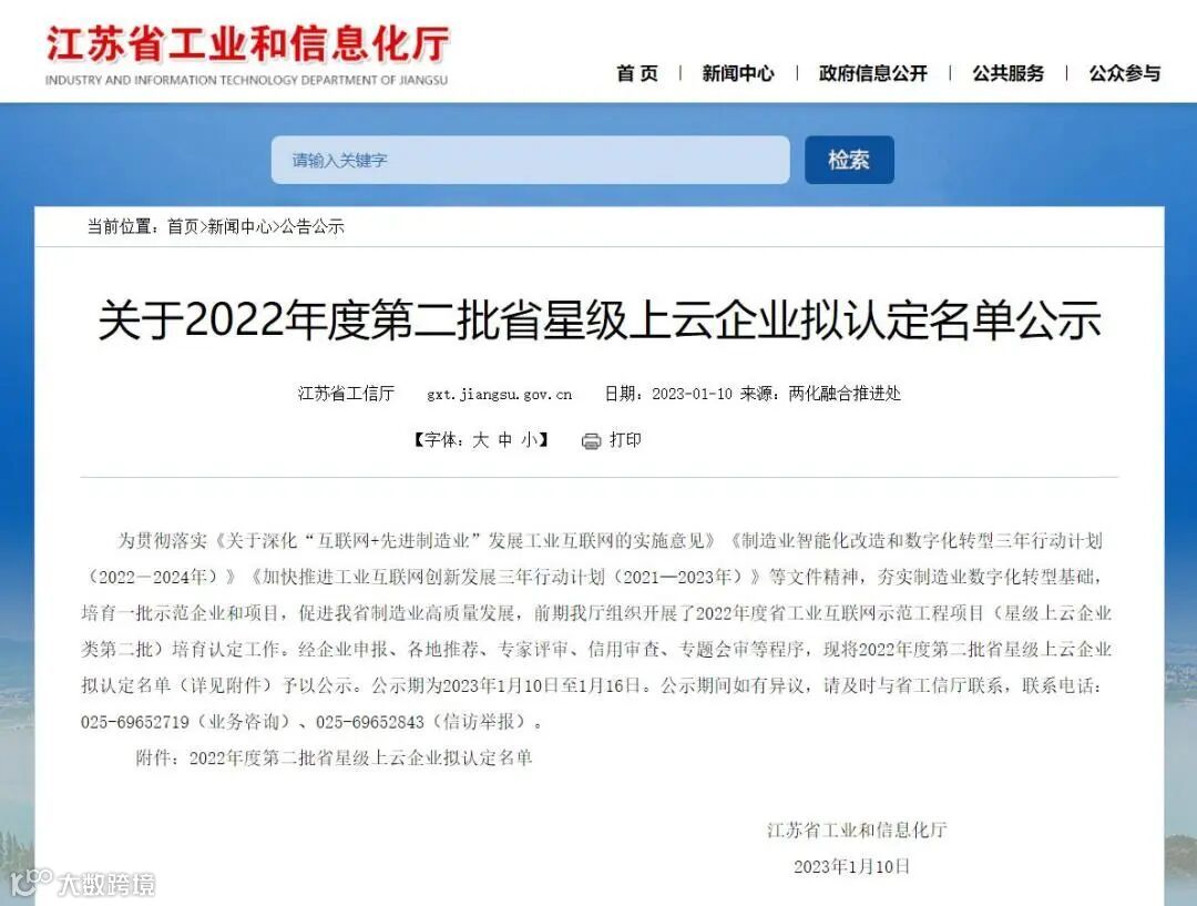 近日,江苏省工信厅公布了2022年度第二批省星级上云企业拟认定名单公示,江苏联环药业股份有限公司凭借出色的云平台建设、工业互联网服务能力顺利入选并获得五星级最高等级评定。