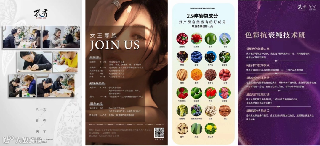 品牌名称解读上,赋予“孔文化,绣天下” 全新内涵 ——“孔” 并非特指儒家文化,而是萃取东方传统纹饰、文脉精髓,以 “孔” 为媒传递东方美学底蕴;“绣” 则超越技术层面,升华为以纹绣勾勒女性独特气质的艺术表达,彰显 “以东方美学绣见天下女性之美” 的愿景。在此基础上,构建多维定位矩阵:以 “东方孔绣” 锚定文化身份,区别于外来风格;以 “能量纹绣” 融入东方养生理念,赋予服务身心疗愈价值;以 “360° 色彩抗衰先行者” 凸显技术优势,将东方色彩哲学与抗衰需求结合;以 “东方能量纹绣美学使者” 确立品牌使命,传递文化传播与自信唤醒的价值。