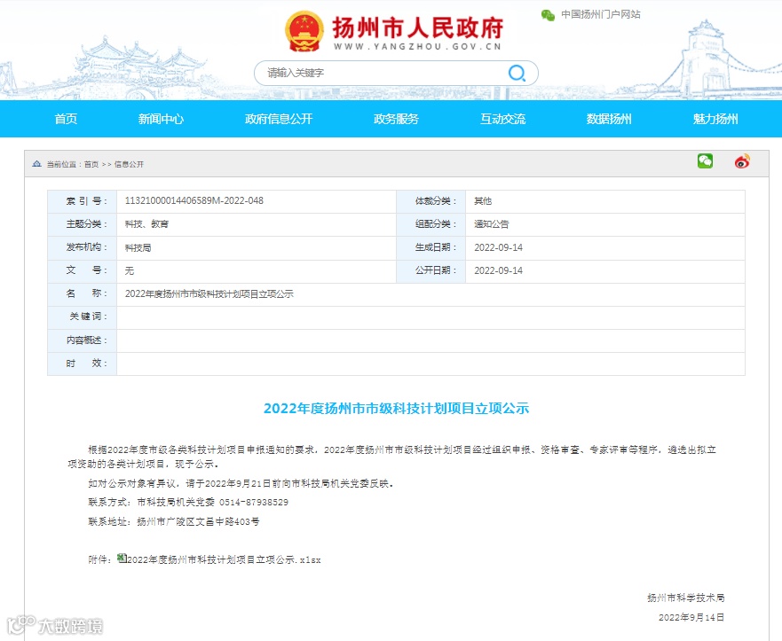 近日,扬州市科学技术局公布了2022年度扬州市市级科技计划立项项目名单,我司申报的软科学研究项目——“高质量发展战略下扬州市化妆品制造行业核心竞争力提升路径研究”位列其中。