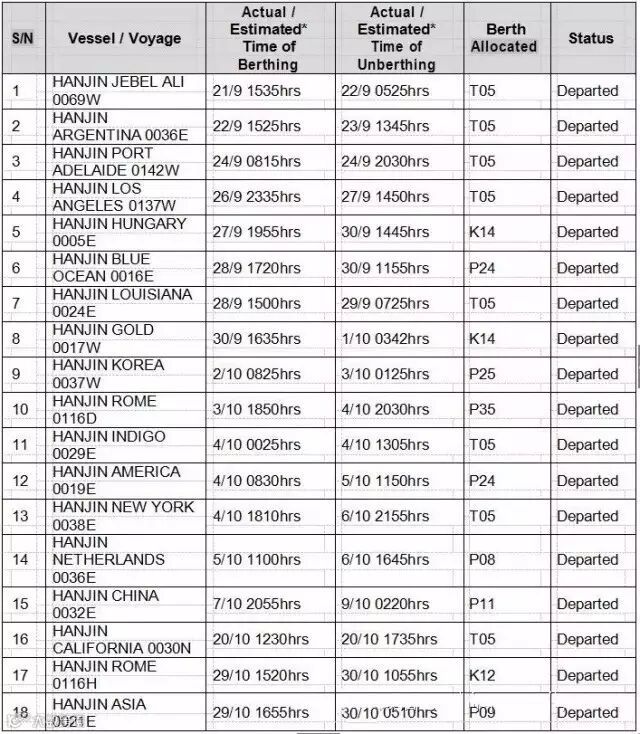 A.根据以上HANJIN的泊靠信息确定你的柜子是否在新码头,提供原提单COPY件供我司进一定确认。