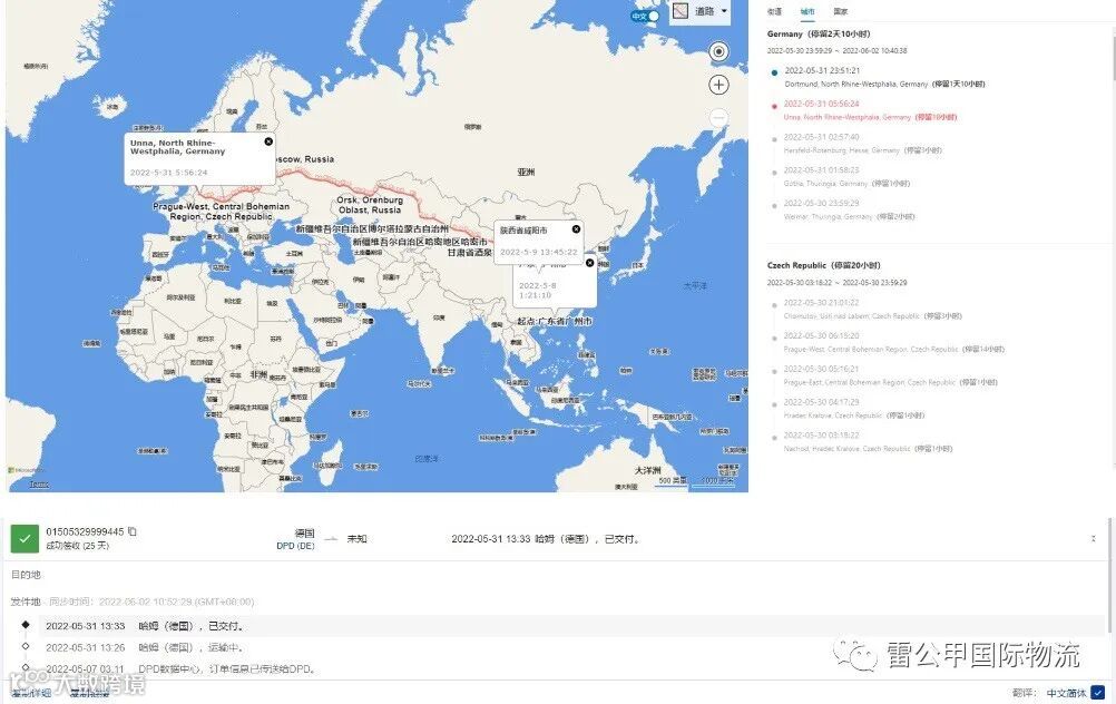 中欧限时达5/7装柜-----5/31快递提取 签收单号(签收时效25-26天)