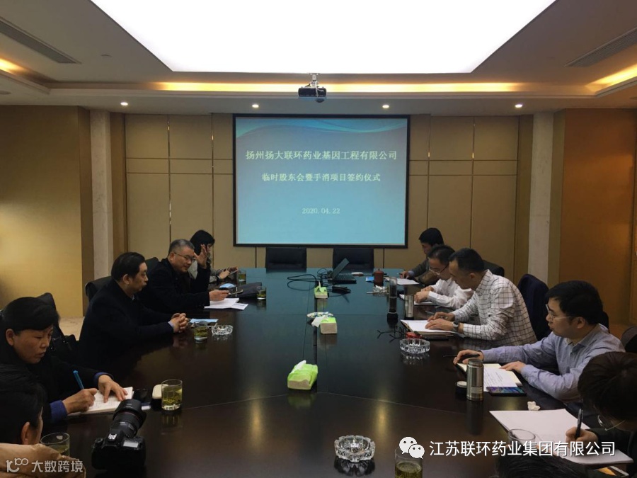4月22日,扬州扬大联环药业基因工程有限公司(以下简称“公司”)临时股东会暨手消项目签约仪式在绿地峰创国际大厦A座9楼会议室顺利召开。公司董事长吴文格、联环集团党委副书记于世庆、扬大资产经营总经理曹伯祥、公司总经理周旻昊、合作方代表王浙宇及相关领导出席签约仪式。