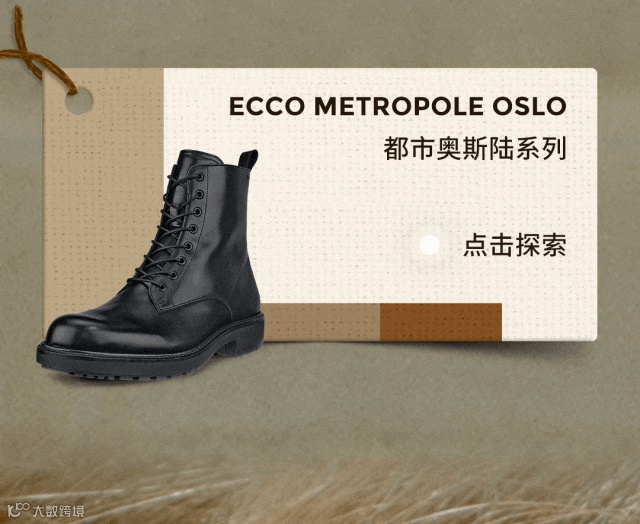 ECCO成立于1963年,作为北欧丹麦鞋履及皮具品牌,一直致力于将舒适与风格完美结合。其成功源于符合人体工学的产品设计及优质皮革。ECCO 是世界上为数不多完全达到资源垂直整合模式的制鞋公司之一,采用自上而下的营运模式,每个环节都直接监管.