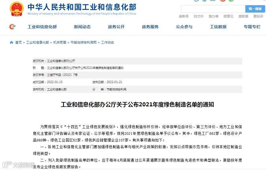 日前,工业和信息化部公布2021年度绿色制造名单,联环集团下属企业大同同星抗生素有限责任公司荣誉上榜,入选“2021年度绿色工厂”名单。