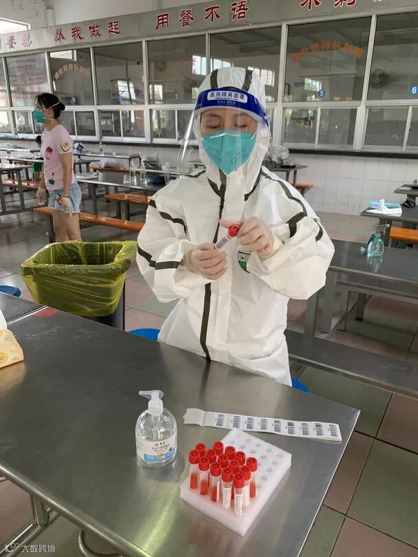 “下一个,把身份证拿出来。”在汊河中学核酸检测点,联环集团志愿者张婧正忙着协助医生完成居民核酸检测。她身着厚厚的防护服,娴熟地完成试管贴码、居民身份信息录入、取样台周边消毒等工作,这已经是她连续在疫情一线坚守的第18天。
