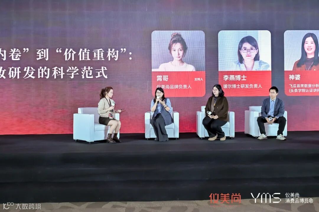 在仪美尚品牌负责人霄哥担任主持人的论坛上,她和瑷尔博士研发负责人李燕博士、飞瓜首席数据分析师/头条学院认证讲师神婆、配方师Rex/护肤成分科普博主/资深配方师胡晓波一起,就产品的价值回归各抒己见。