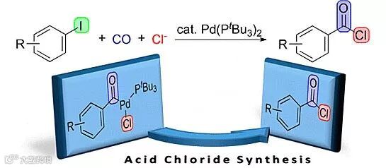 图4. 插羰反应合成酰氯。图片来源:J. Am. Chem. Soc., 2013, 135, 16841
