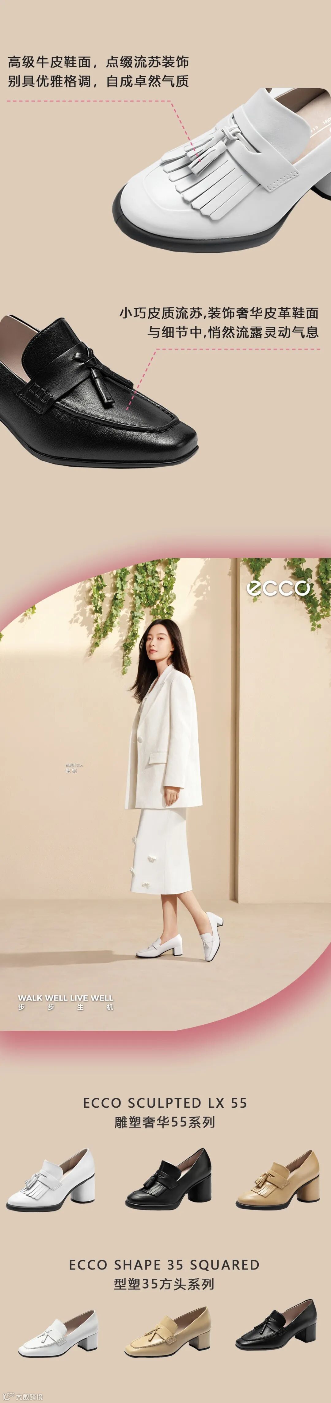 ECCO成立于1963年,作为北欧丹麦鞋履及皮具品牌,一直致力于将舒适与风格完美结合。其成功源于符合人体工学的产品设计及优质皮革。ECCO 是世界上为数不多完全达到资源垂直整合模式的制鞋公司之一,采用自上而下的营运模式,每个环节都直接监管.