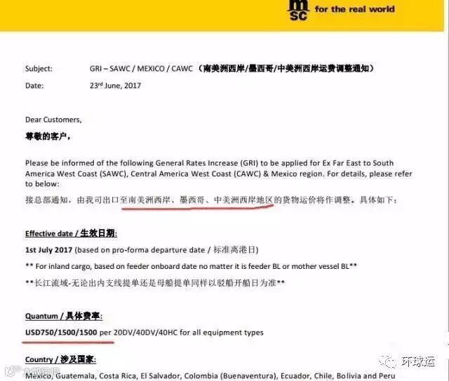 (3)出口至南美洲西岸、墨西哥、中美洲西岸: