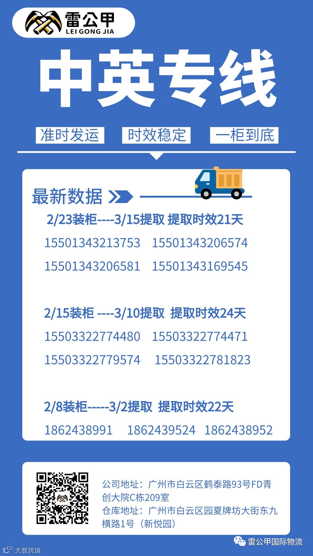 导读:点击蓝字 关注我们中英专线 时效稳定,准时发运,一柜到底,装柜后22-25天左右提取派送