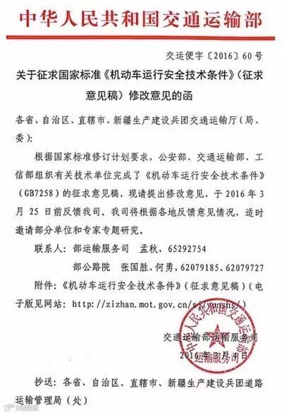 3月4日,交通运输部下发关于征求国家标砖《机动车运行安全技术条件》(征求意见稿),在GB7258标准修订征求意见稿中有大量内容涉及危化品运输车辆