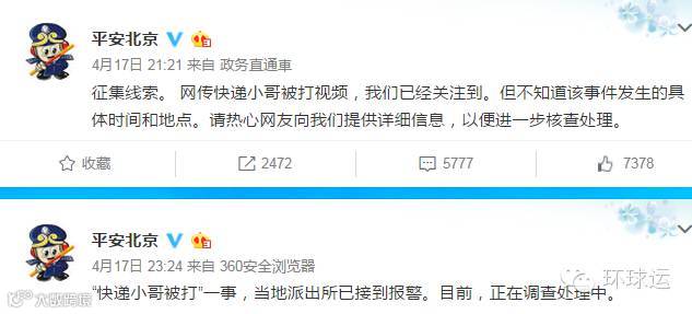 随后晚11点,又更新微博表示“快递小哥被打”一事