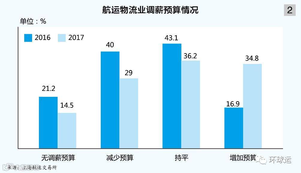 2017年是航运业触底回升的一年,航运市场呈现明显复苏态势。与此相对应,2017年度航运物流行业平均薪资调整幅度约为6.7%,比2016年提高0.3个百分点,显示出整体市场的回暖态势。