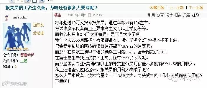 首先衡量一份工作的好坏,最重要的一个因素就是工资待遇,在很多人的意识中,报关员的薪水普遍很低