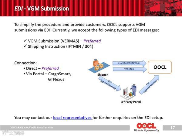 * EDI 注册客户可以通过 EDI 平台提供他们的 VGM (如 INTTRA, GTNexus and E&P)