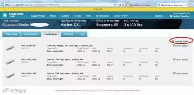 ——客户通过任何一种渠道发送的VGM都可以在“我的马士基”某订舱号的集装箱项下显示马士基航运成功接收/ 发送的VGM。