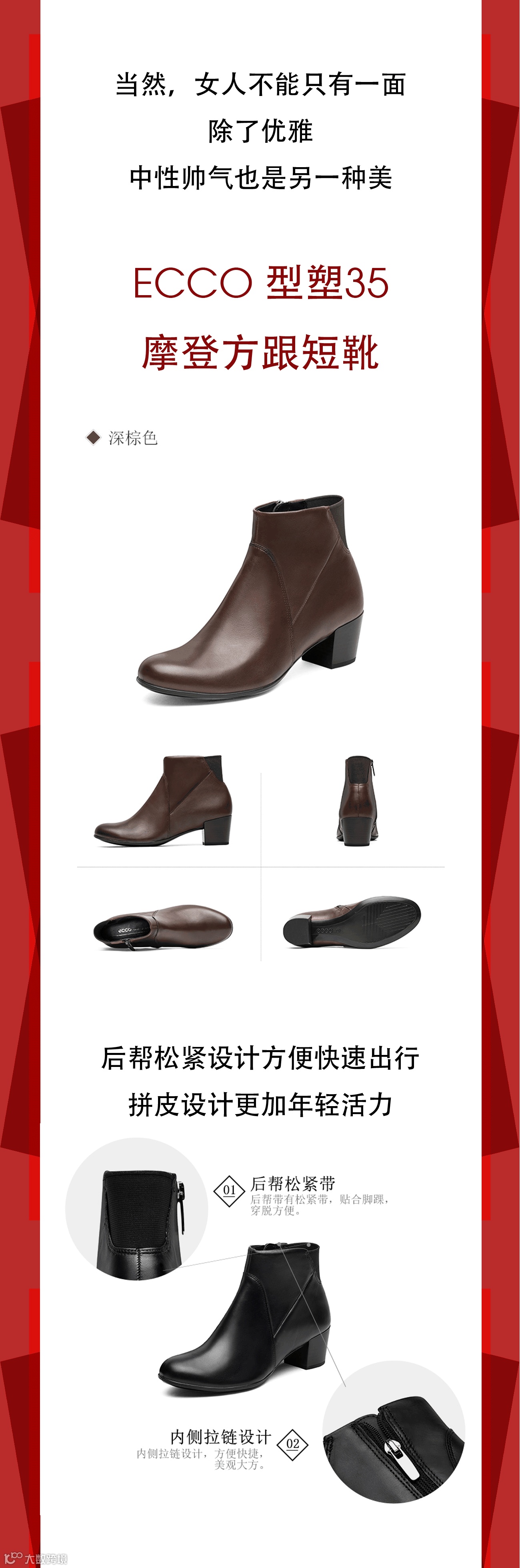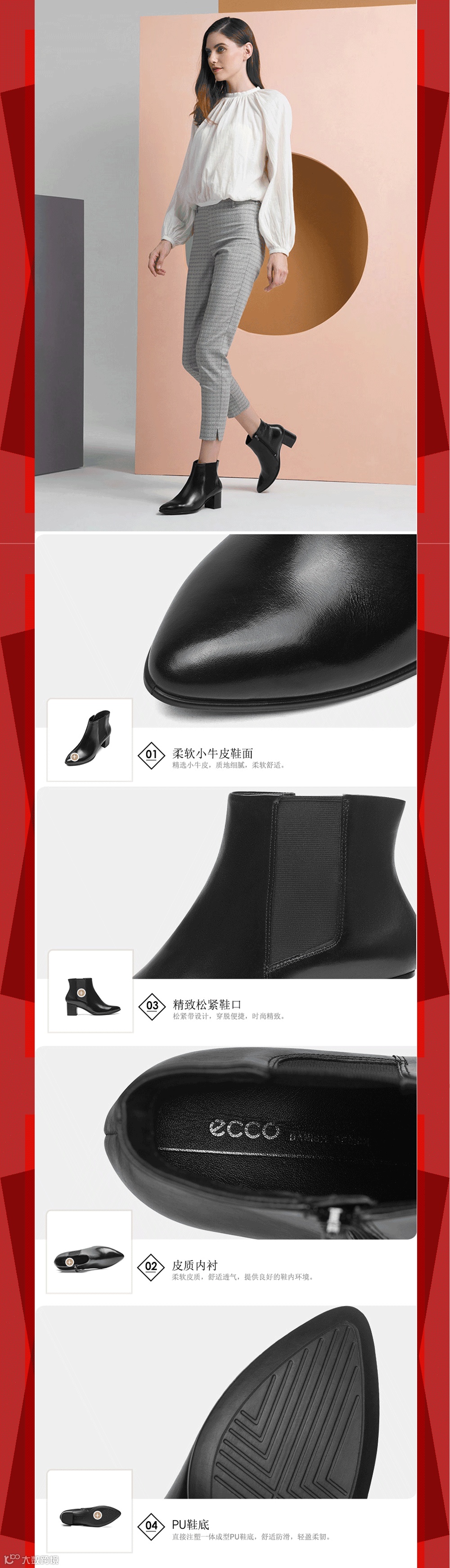 ECCO成立于1963年,作为北欧丹麦鞋履及皮具品牌,一直致力于将舒适与风格完美结合。其成功源于符合人体工学的产品设计及优质皮革。ECCO 是世界上为数不多完全达到资源垂直整合模式的制鞋公司之一,采用自上而下的营运模式,每个环节都直接监管.