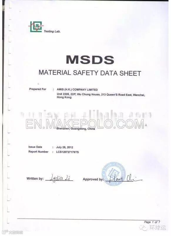 MSDS是化学品生产或销售企业按法律要求向客户提供的有关化学品特征的一份综合性法律文件。它提供化学品的理化参数、燃爆性能、对健康的危害、安全使用贮存、泄漏处置、急救措施以及有关的法律法规等十六项内容。MSDS可由生产厂家按照相关规则自行编写。但为了保证报告的准确规范性,可向专业机构申请编制。