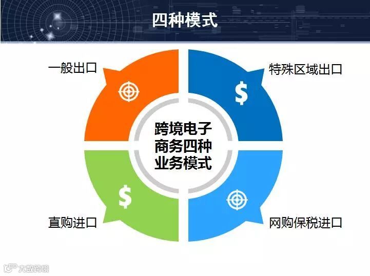 这是我们四种模式,可能在做电商朋友们可以看到,我们有一般出口、特殊区域出口,网购保税进口,直购进口。