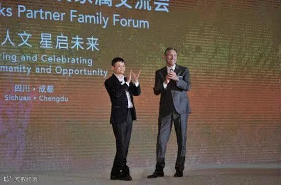 (马云和星巴克CEO霍华德·舒尔茨。注意,马云又来了一个有钱任性的站姿)