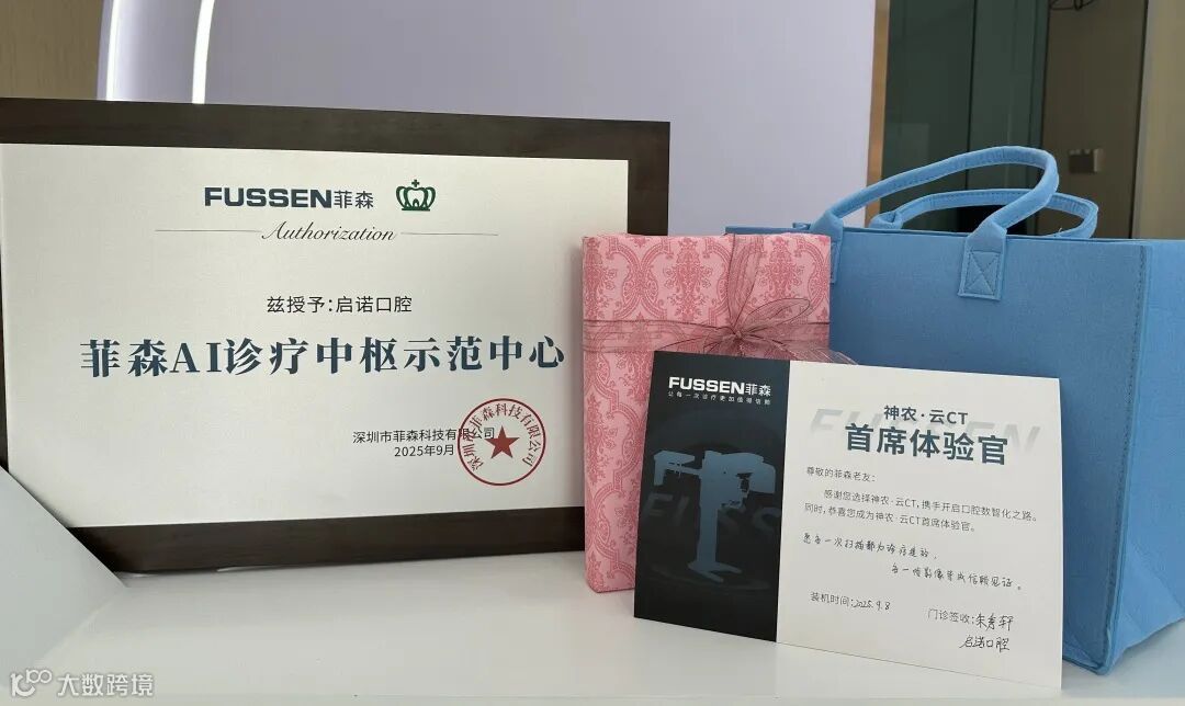 不仅向客户授予象征荣誉与合作的专属纪念牌,赠予了精心准备的装机贺礼,还特别呈上了一份可签名的“首席体验官”荣誉证书。当签名笔落下的那一刻,标志着菲森与启诺口腔深度合作之旅正式启航。