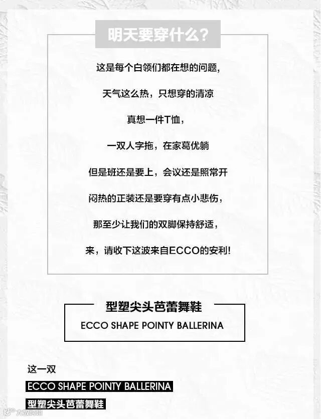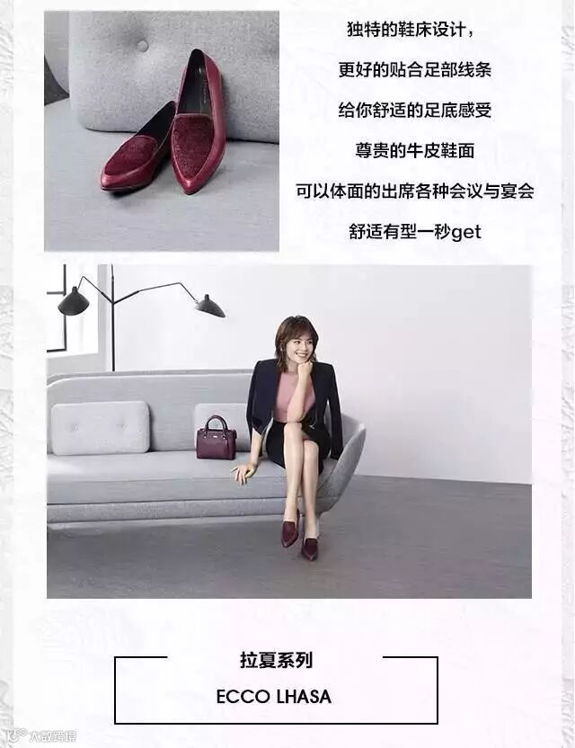 ECCO成立于1963年,作为北欧丹麦鞋履及皮具品牌,一直致力于将舒适与风格完美结合。其成功源于符合人体工学的产品设计及优质皮革。ECCO 是世界上为数不多完全达到资源垂直整合模式的制鞋公司之一,采用自上而下的营运模式,每个环节都直接监管.