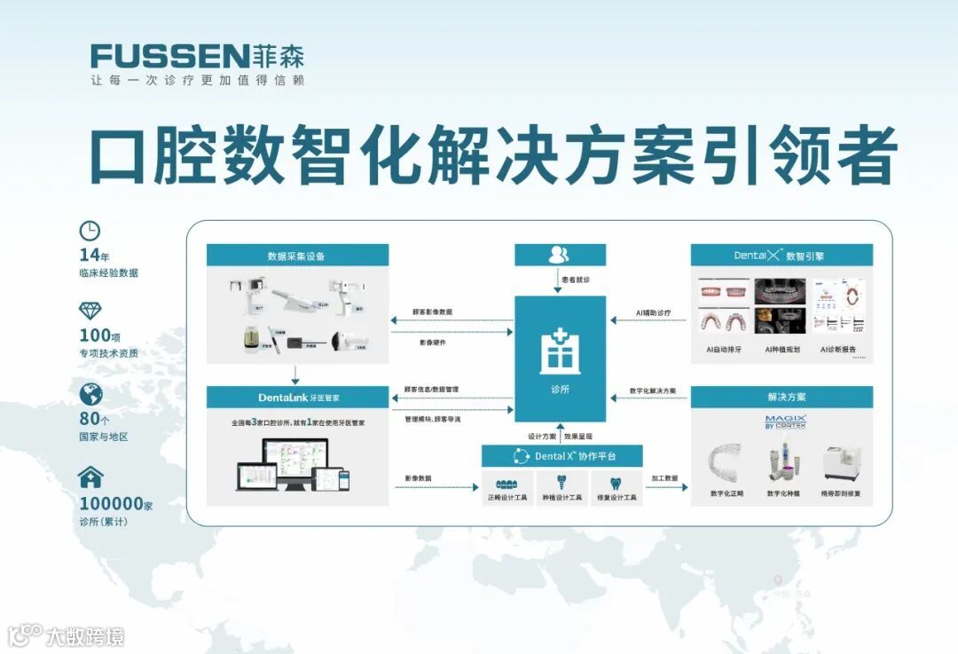 当前齿科数字化已从单一产品应用向场景解决方案延伸。菲森科技通过技术创新及流程优化,将影像设备、AI技术、软件应用与诊疗场景有机串联,基于客户个性需求呈现数字化解决方案,从硬件配置、数据采集、方案设计、临床应用提供全流程支持,为客户搭建数字化诊疗闭环,提升生产效能提供强大助力。